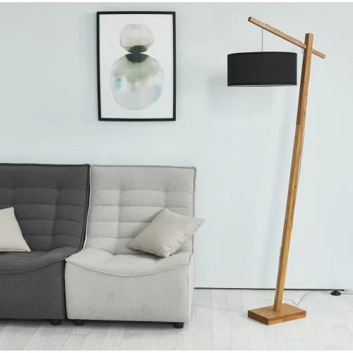 Maisons Du Monde Lampadaires Lampadaire En Bois D’ailante Beige Et Abat-jour En Tissu Blanc H169