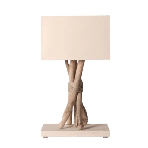 Maisons Du Monde Lampes à Poser Lampe En Céramique Beige Et Fer Doré, Abat-jour En Coton Blanc