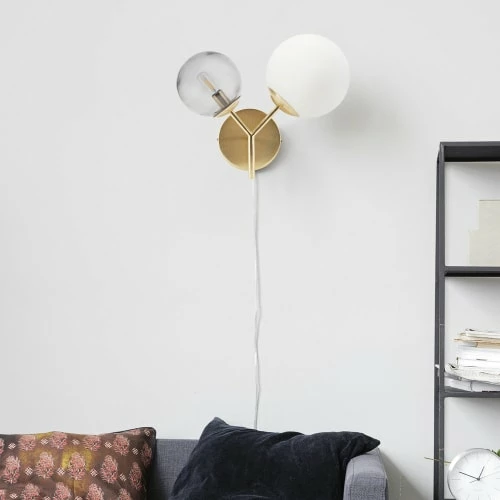 Maisons Du Monde Appliques Murales Et Spots Applique 2 Globes En Verre Et Métal Doré