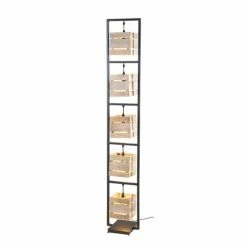 Maisons Du Monde Lampadaires Lampadaire En Métal Noir Mat Et Abat-jour Tressé En Corde Bicolore H162