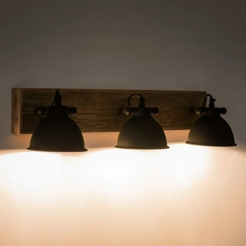 Pour une déco façon « hipster », optez pour l’applique 3 lampes en manguier et métal noir et son charme brut.