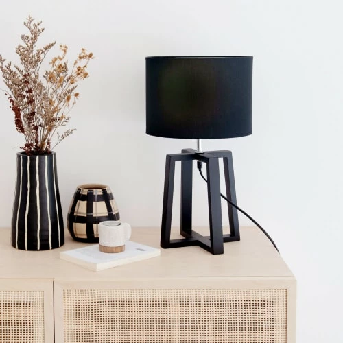 Maisons Du Monde Lampes à Poser Lampe En Bois D’hévéa Et Abat-jour En Coton Noir