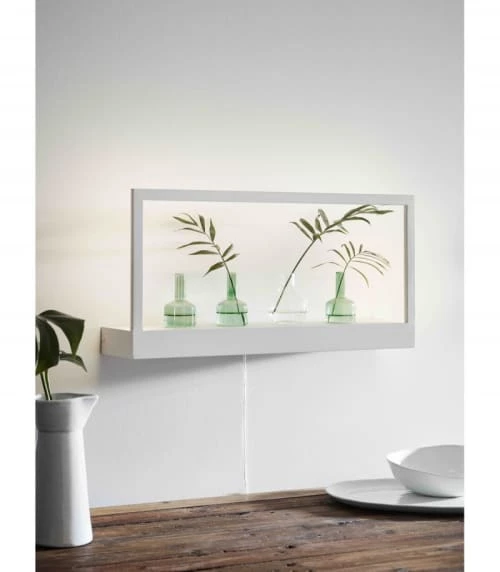 Ce luminaire est à la fois une applique murale, une étagère ET un cadre lumineux !